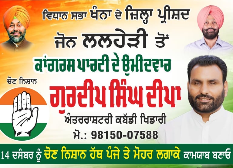 ਮੈਂ ਇੱਕ ਅੰਤਰਰਾਸ਼ਟਰੀ ਕਬੱਡੀ ਖਿਡਾਰੀ ਅਤੇ ਜਿਲਾ ਪ੍ਰੀਸ਼ਦ ਲਲਹੇਰੀ ਜ਼ੋਨ ਲਈ ਕਾਂਗਰਸ ਉਮੀਦਵਾਰ ਹਾਂ।